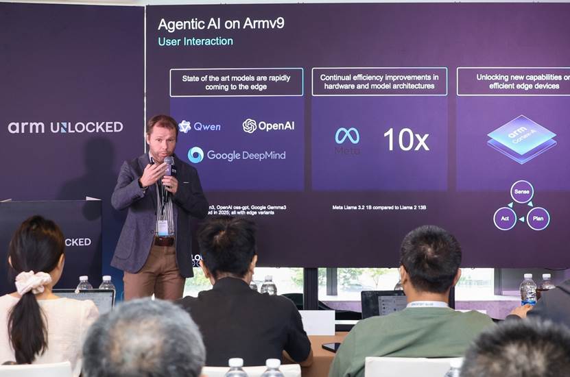 “衡量边缘 AI 生态系统的成功,核心标准在于创新活力。我们致力于构建开源、标准化的生态系统,让开发者能够自助获取所需工具,持续激发创新潜能。” Lionel介绍,Arm 是全球应用最广泛的计算平台,拥有全球规模最大的计算生态系统,以及超过 2200 万名软件开发者;软件技术方面,Arm KleidiAI 软件库已经集成到多个主流 AI 框架,包括 Llama.cpp、ExecuTorch 和 LiteRT,能够对Meta Llama 3 和 Phi-3 等主流AI 大模型进行加速,进一步释放 AI 计算性能。