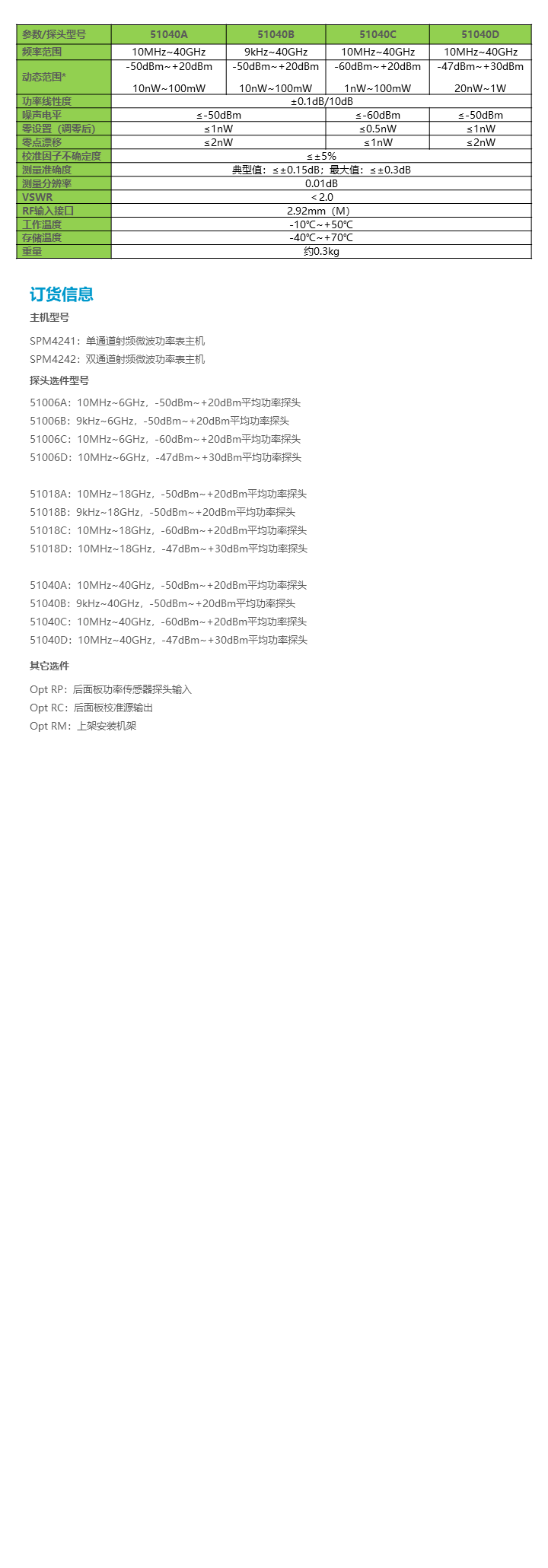 测量频率:4kHz~40GHz(取决于功率传感器)