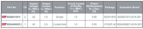 新产品已经开始量产(样品价格300日元/个,不含税),并已开始通过电商进行销售,均可购买(BD60210FV、BD64950EFJ)。另外,ROHM还提供可助力应用产品开发和设计的评估板(BD60210FV-EVK-001、BD64950EFJ-EVK-001)。