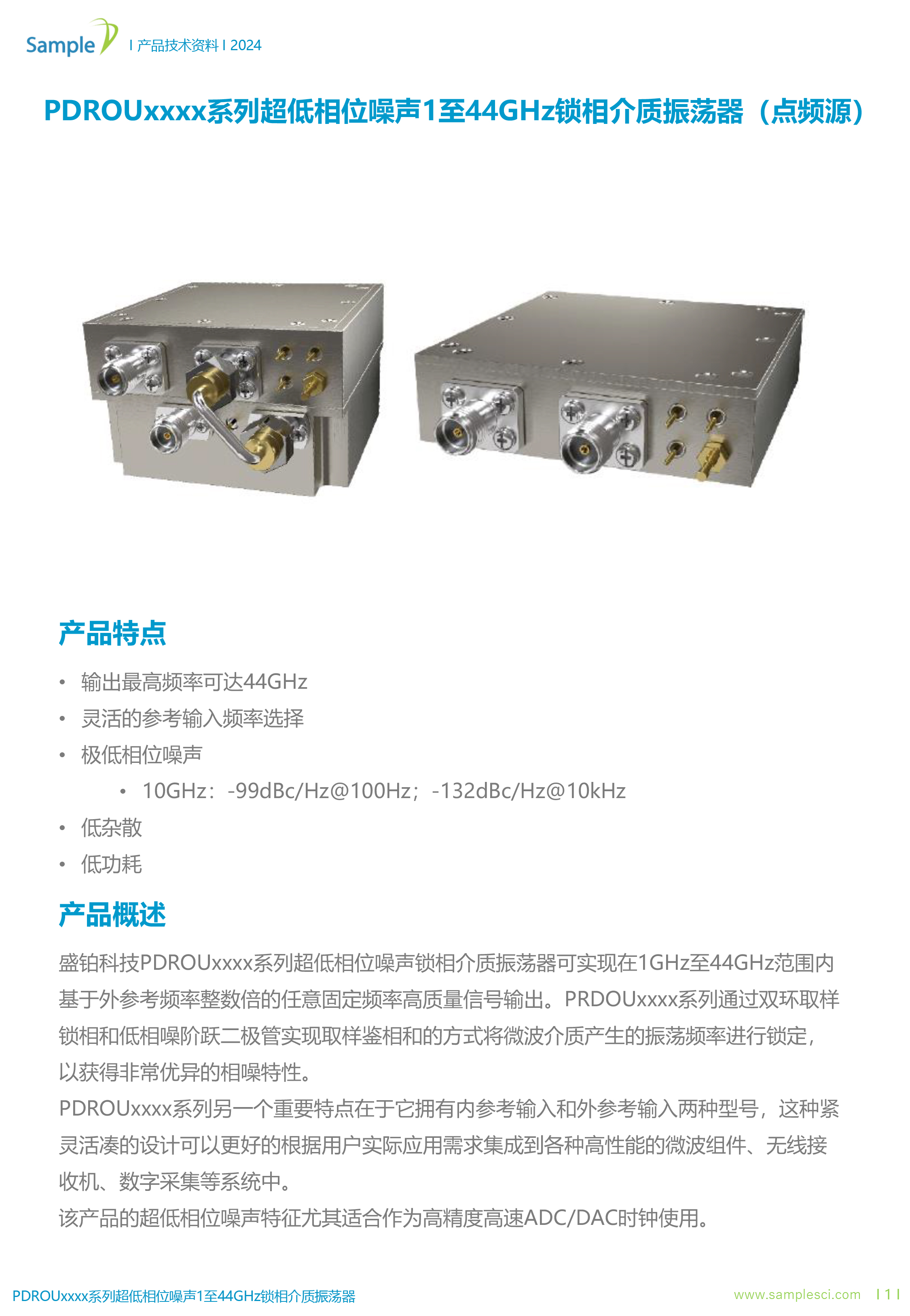 盛铂科技的PDROUxxxx系列锁相介质振荡器是一款覆盖 1GHz至44GHz 频段的固定频率信号源,其超低相位噪声、低杂散和低功耗的特点,特别适合高性能射频微波系统。