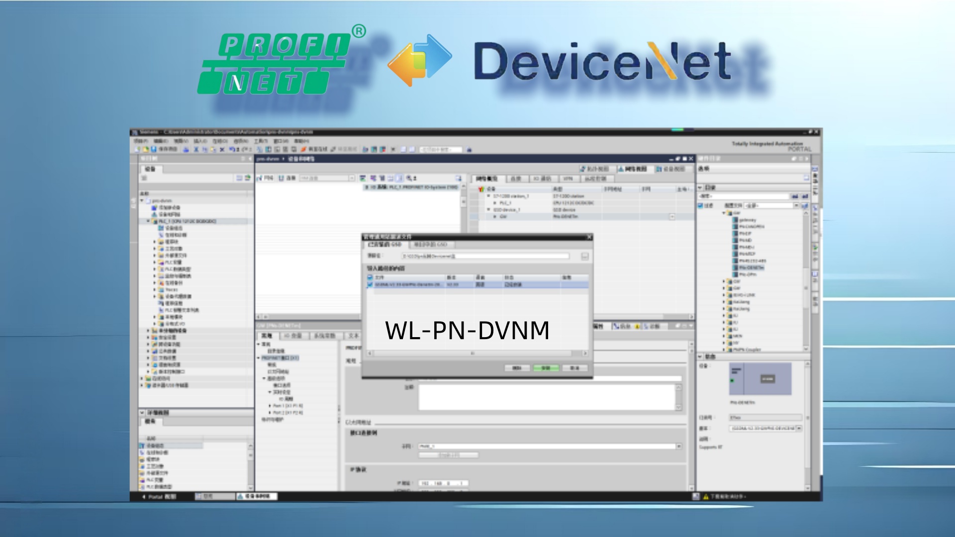 profinet转devicenet网关GSD文件导入:在“硬件目录”中右键选择“安装新的GSD文件”,导入网关对应的Profinet从站GSDML文件(需从网关厂商获取),导入后在“ProfinetIO>其他”中找到网关型号并添加到Profinet网络。