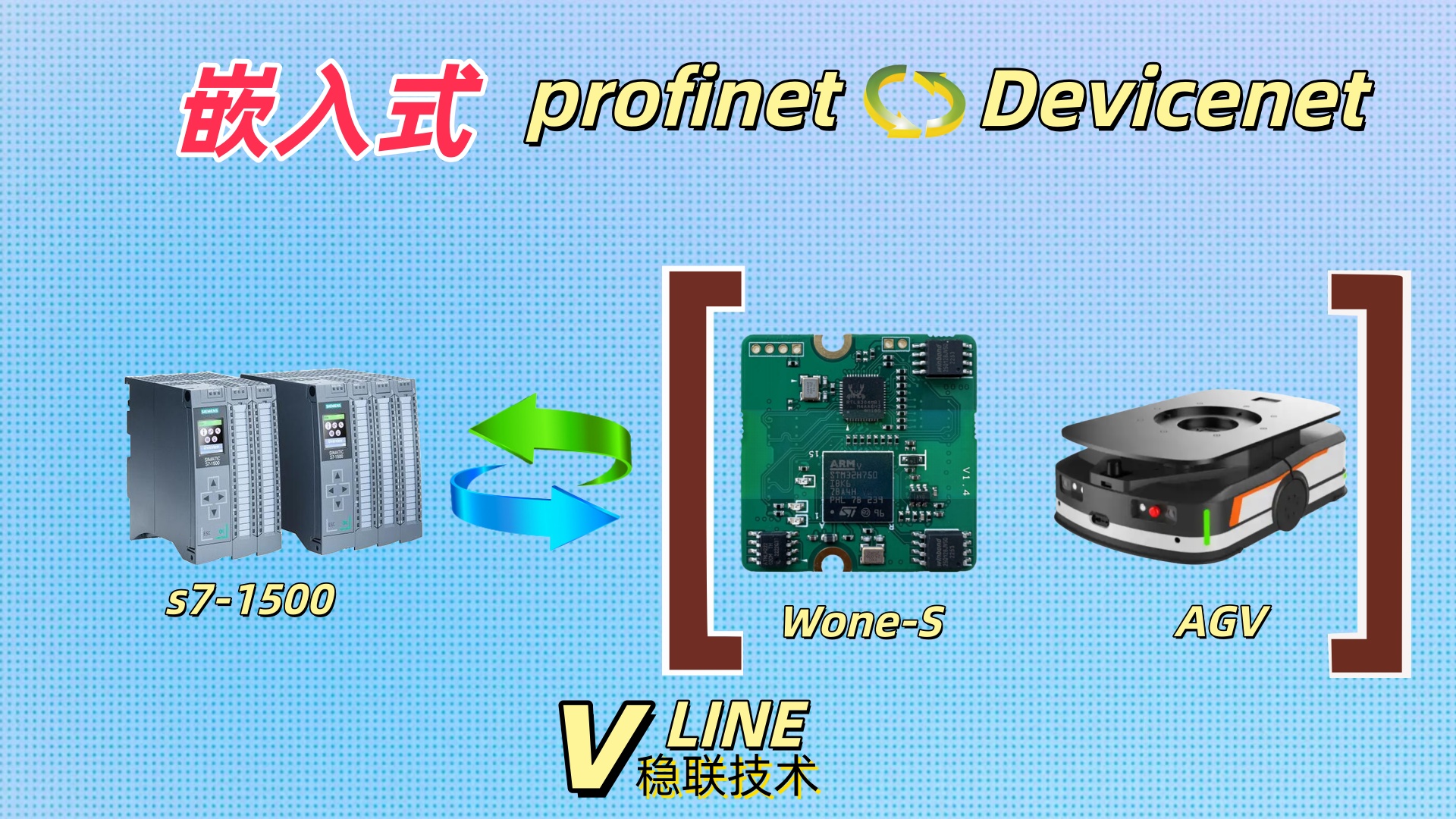 本案例适用于智能仓储物流系统,西门子S7-1200PLC通过Profinet连接DeviceNet主站网关,网关下联DeviceNet从站型AGV(自动导引车)驱动模块和扫码枪,实现AGV的路径控制与货物信息采集。核心需求是基于网关的嵌入式固件,实现硬件接口的适配与数据的高效处理。