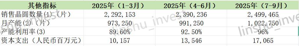 晶圆的数量,产能及利用率按季度上升,说明在关键制程工艺方面实现了良率的提升;资本支出持续增加,说明了在研发或者产能方面持续发力。