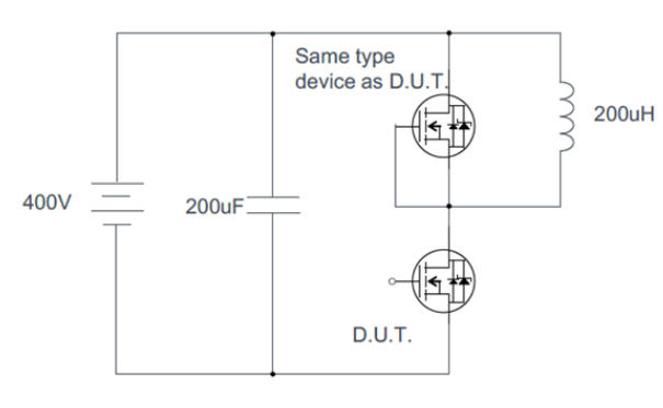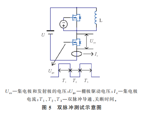 对于设计的碳化硅驱动板,需要进行双脉冲测试 来评估驱动板功能和性能。双脉冲测试如图5所示, 用电感 L将碳化硅上管短路,上管驱动加-5V 关断, 下管为测试对象,驱动板驱动下管进行测试。