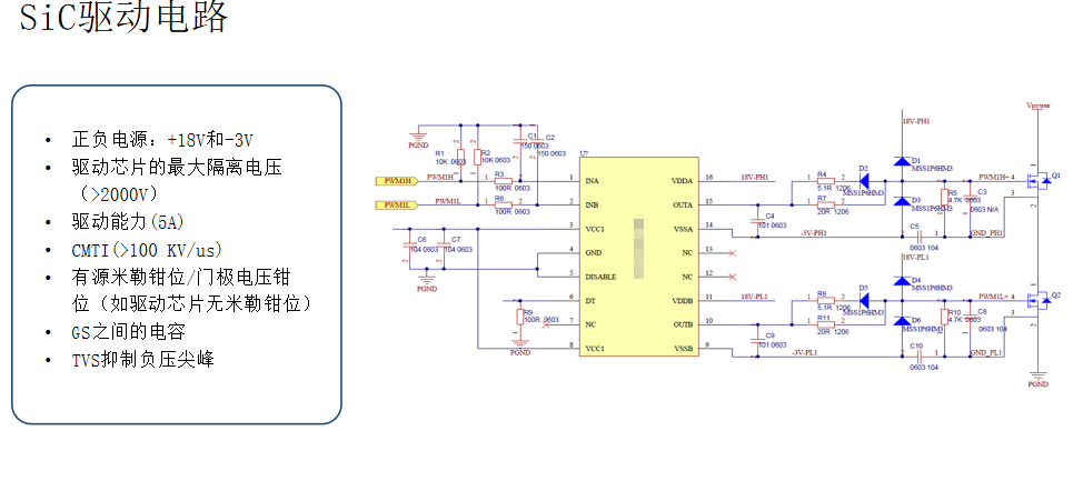 (1)满足碳化硅 MOSFET 高速开关的要求,使用 驱动能力较强的驱动芯片;