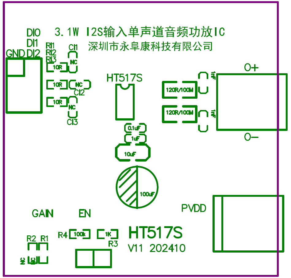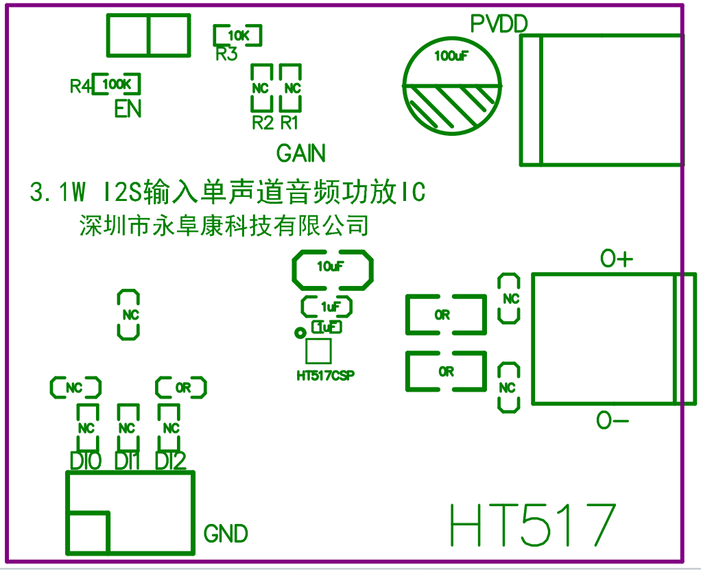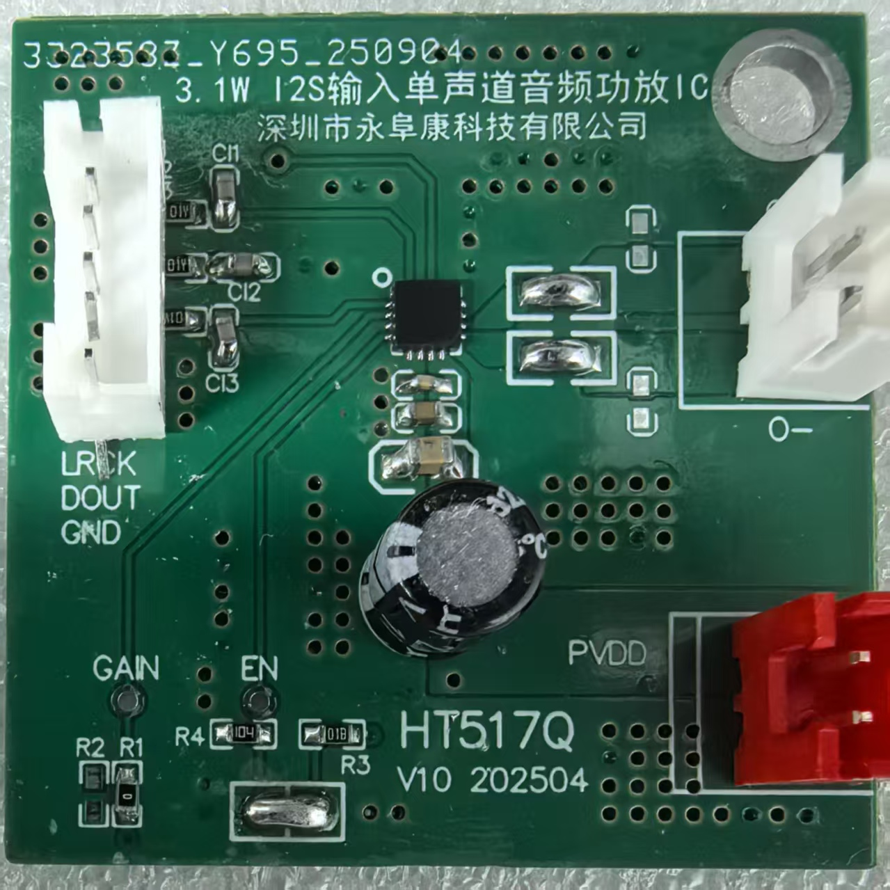 HT517 I2S数字输入3.1W单声道低功耗D类功放芯片解决方案