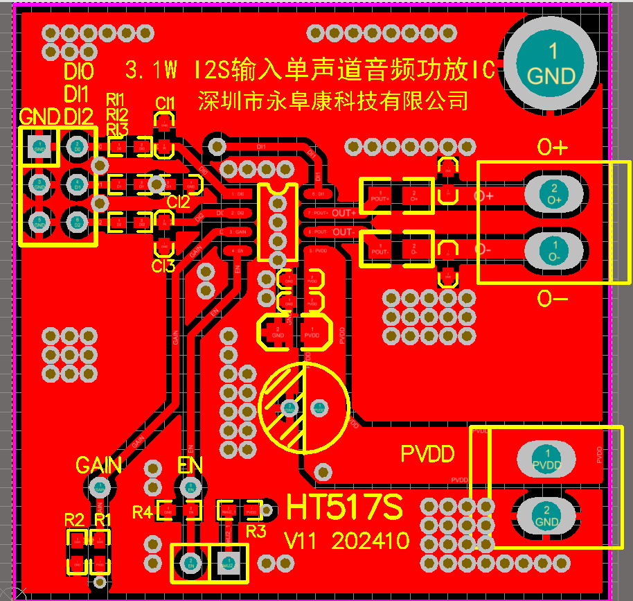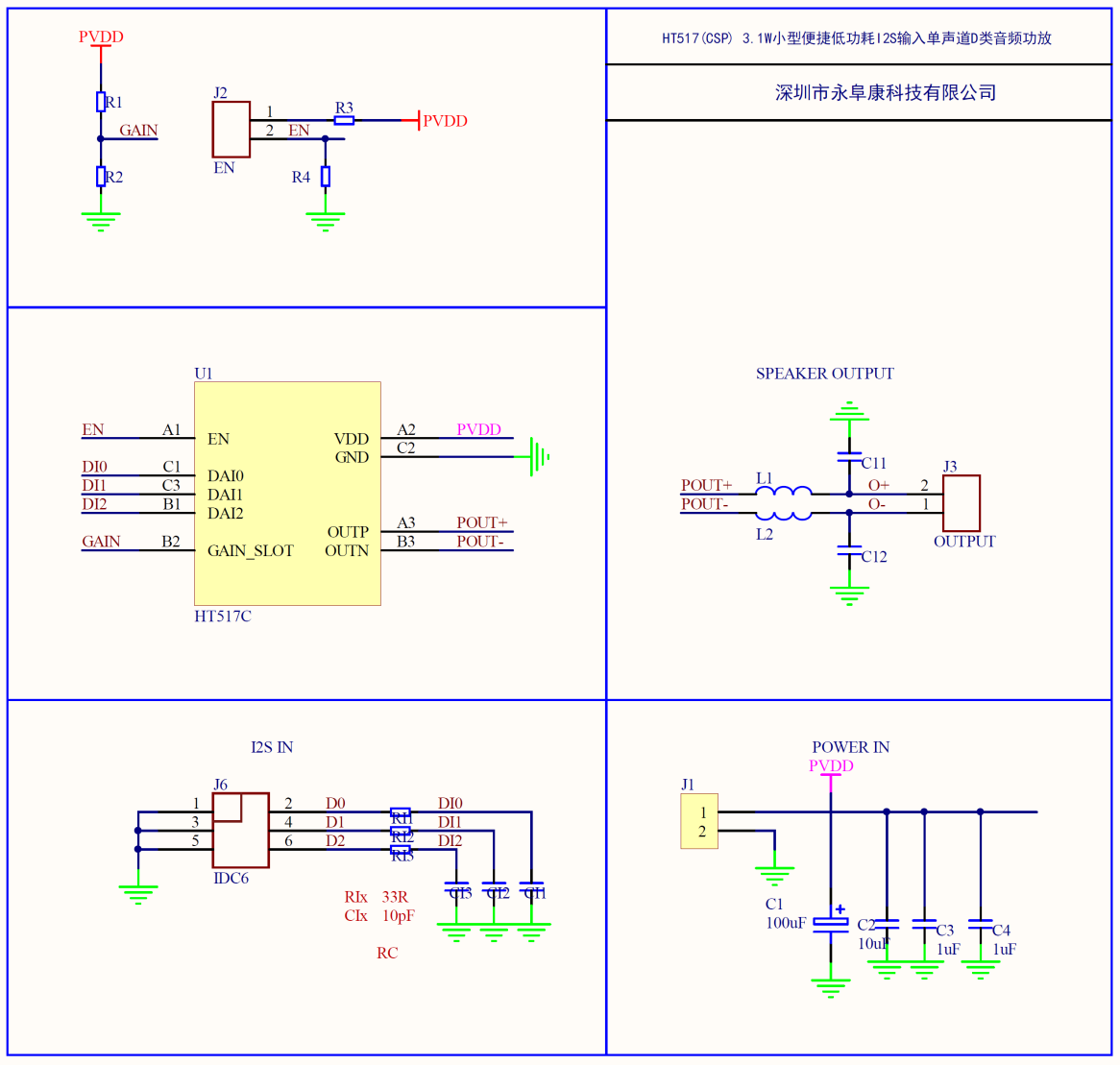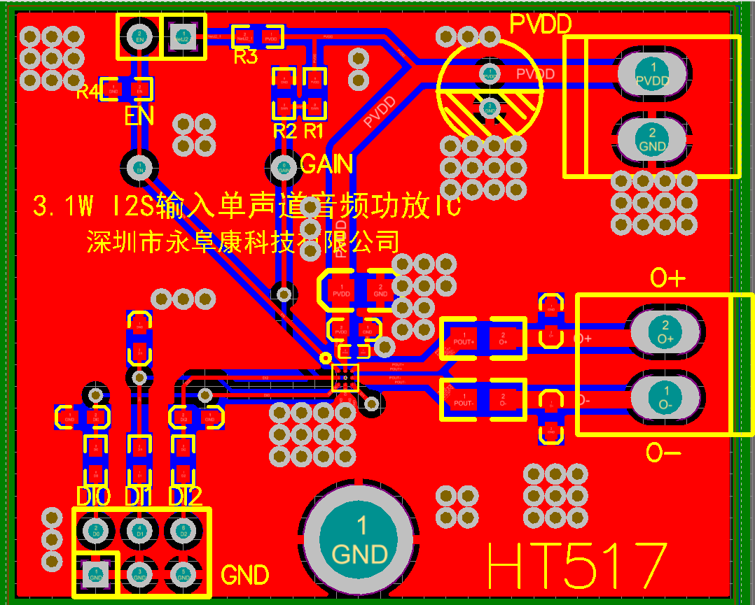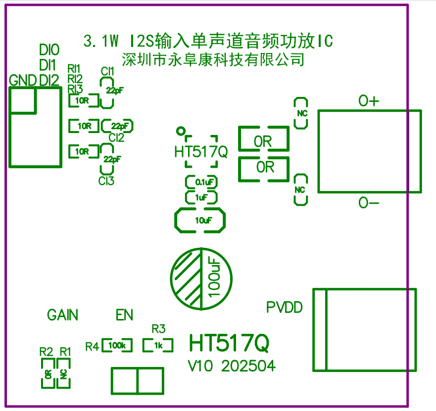 HT517 I2S数字输入3.1W单声道低功耗D类功放芯片解决方案