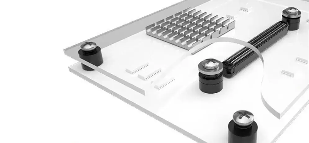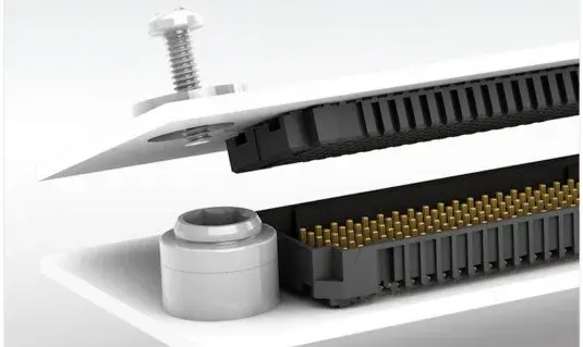 Samtec建议使用支撑柱,因为它们可以消除角度和Z轴的错位影响。然而,最佳实践是将支撑柱放置在尽可能靠近连接器系统的位置,这样可以将应力集中在连接器附近,并减少未支撑的PCB跨度。此外,建议在连接器配接后再将支撑柱等部件拧紧至最终扭矩规格。