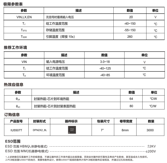 此外,这款稳压器防护功能拉满,内置过压、过流、过热、短路保护,搭配纤小的 DFN2X2_8L 封装,能节省 PCB 空间,同时符合 RoHS 标准且无卤素,绿色环保。从 IoT 设备、智能家居到各类便携电子,IU5507T 都能凭借稳定性能与极简外围设计,为设备供电保驾护航。