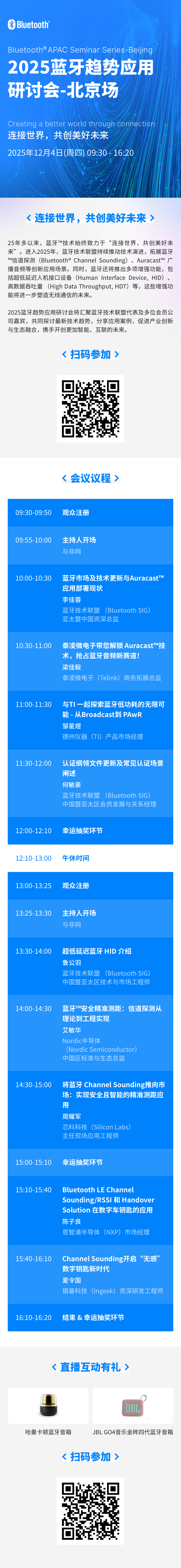 2025蓝牙趋势应用研讨会将汇聚蓝牙技术联盟代表及多位会员公司嘉宾,共同探讨最新技术趋势,分享应用案例,促进产业创新与生态融合,携手开创更加智能、互联的未来。前往大会专题>>