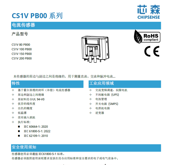 CS1V作为国产电流传感器,在性能上可替代LEM,且成本更低,适合大规模应用。
