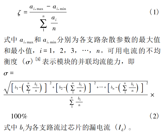 模块内部各并联支路杂散参数的不均衡是导致并联时电流不均衡的主要因素,为了表示支路之间相同位置上参数的不均衡,可通过式 ( 1 ) 计算功率模块杂散参数的不均衡程度( ) ,即