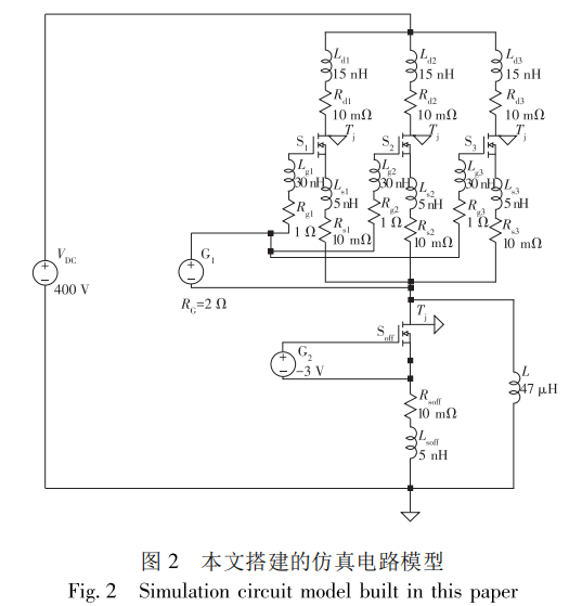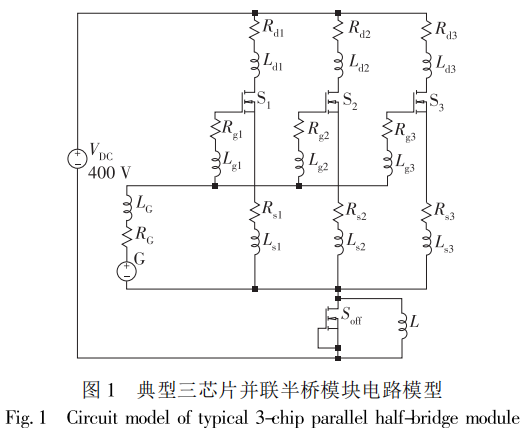 针对由并联回路杂散参数不均衡导致的电流不均衡,本文提出了一种芯片源极互连方法,即在并联芯片的源极焊盘之间进行键合线互连,该方法可以降低多芯片并联模块中各个支路的不均流 以杂散参数不均衡的三芯片并联半桥电路为基础进行建
