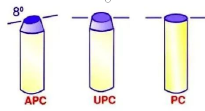UPC (Ultra Physical Contact),超物理端面。UPC连接器端面并不是完全平的,有一个轻微的弧度以达到更精准的对接。UPC是在PC的基础上更加优化了端面抛光和表面光洁度,端面看起来更加呈圆顶状。