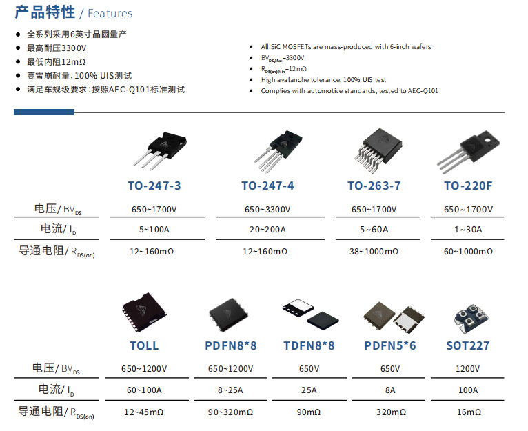 最终,这一技术路径为AI数据中心带来了更低的运营成本(电费)、更高的算力密度(支持更强大的AI集群)、以及更可靠的供电保障,是支撑未来十年AI产业持续高速发展的关键基础设施技术之一。目前,包括谷歌、微软在内的超大规模数据中心运营商都在积极研究和部署这一技术方案。碳化硅MOSFETs与SiC功率模块产品概览