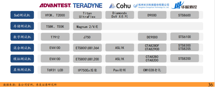 SoC测试机领域:长川科技推出D9000 SoC测试设备,华峰测控推出对标V93K架构的STS8600系列