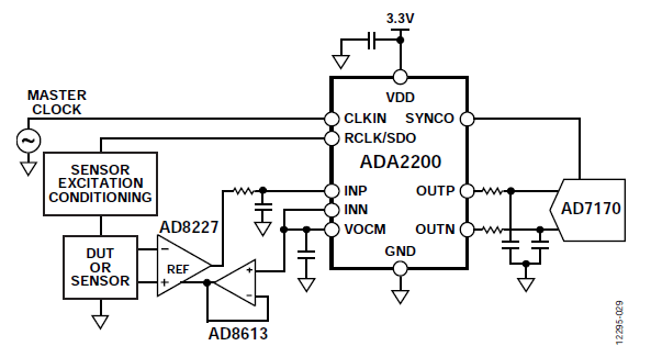 ADA2200集成ADC驱动,可以将结果直接给到ADC当中,简化信号链的设计。