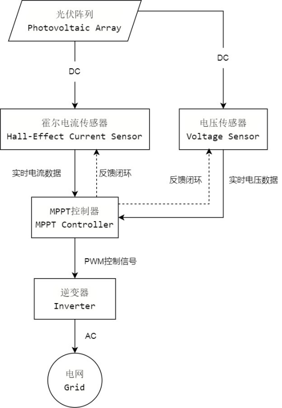 优化控制算法:采用先进的MPPT算法,如扰动观测法、电导增量法,以及优化PWM策略,比如南航提出的断续模式控制策略,使轻载效率提升5%。优化MPPT算法具体可以通过电流传感器优化MPPT算法,主要是利用霍尔传感器的高精度、快速响应和隔离测量特性,实时监测光伏阵列的电流和电压,从而精确调整工作点。下面是技术路径和优化机制: