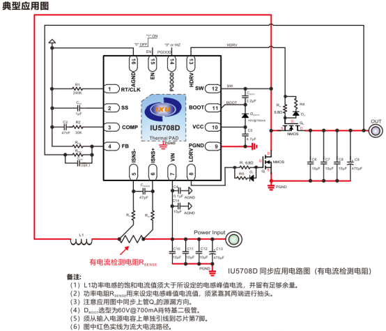 其核心性能亮眼,开关频率可通过外部电阻编程(50KHz~1MHz)或与300KHz~1MHz外部时钟同步,反馈基准电压精度±1%(典型值1.2V),电压调节可靠。静态工作电流720μA,关断电流最大6μA,功耗控制均衡;内置6.6V栅极驱动器,适配标准阈值MOSFET,同步整流设计搭配无损电感DCR检测进一步提升效率,独特的电感自检测技术可省掉电流检测电阻,显著降低外围成本与发热。