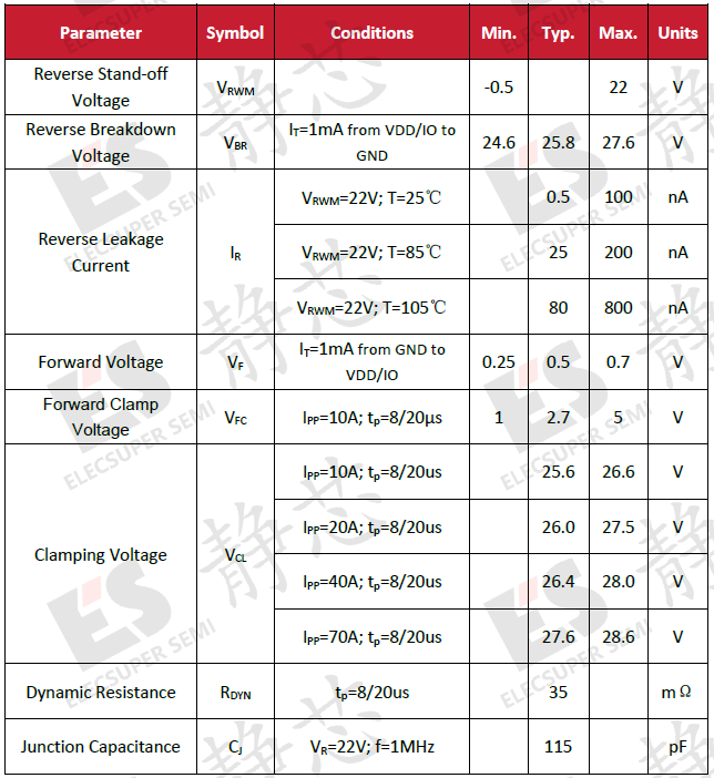 上图介绍了使用PD 3.1控制器TPS25730的部分参考设计。USB PD 3.1可以提供高达 100W 的功率,VBUS上的最大电压可以达到20V(20V&5A)。如果总线上的电压增加超过其设计参数,USB PD控制器可能会损坏。因此设计人员经常选择使用具有高于标定峰值脉冲电流(IPP)额定值的TVS二极管器件保护总线,VBUS引脚的安全性就需要使用工作电压高于 20V 的防护器件来保护 VBUS 引脚,以保持钳位电压低于PD控制器损坏阈值。