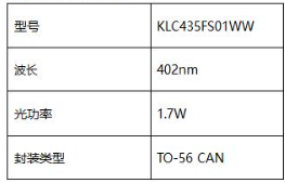 1. 实现402nm波长业界顶级的1.7W光输出,有助于光学系统的小型化