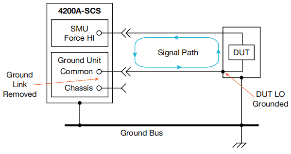 - 屏蔽DUT并将外壳和测试电路的公共端,4200A-SCS的Force LO端子短接