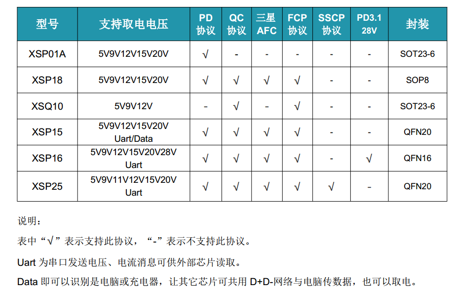 如需12V以上输出,建议选择支持串口发送充电器功率信息的芯片(如XSP25或XSP16), 可以防止充电器被拉垮