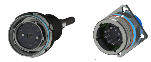 J599 A6 系列光纤连接器由中航光电率先开发(如图 6 所示),除外壳采用三曲槽卡口连接结构外,其余结构与 J599 A8 系列光纤连接器相同。采用三曲槽连接结构,旋转 120° 即可实现连接器插头插座的连接与分离,连接更为迅速。