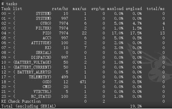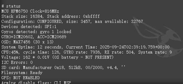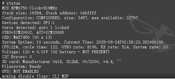 在典型环境下,即IMU@8k采样率,4路dhsot600电调(未使用回传),外接CRSF接收机,外接IRC协议图传,采样电池电压的情况下: