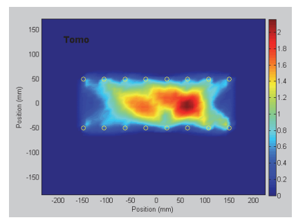 实验结果:在机翼布局下,能检测到结冰存在,并且能大致反映结冰程度最严重的区域,但在非结冰区域存在一定误差,导致结冰重构图像不理想。分析这种现象产生的原因,由于在机翼布局下,由于是人工喷水结冰,结冰冰型不均匀,有致密的孔隙,而当导波通过结冰区域时,冰层的反射、散射现象非常复杂,这使得在接收传感器端接收到的信号出现了许多波形的叠加,导致与理想结果出入较大。除此之外,薄的机翼结构加工困难,机翼结构在制作加工时可能存在误差。除此之外,冰的厚度,冰的形态(霜冰、明冰和混合冰)都对结果有一定的影响。