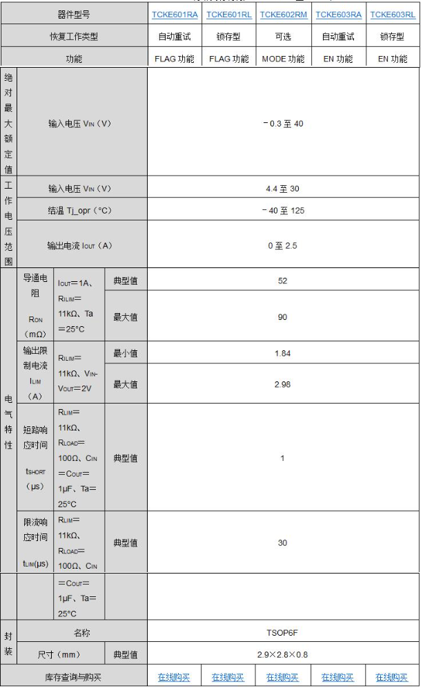 东芝电子元件及存储装置株式会社(“东芝”)宣布,在其支持多种供电线路保护功能的电子保险丝/熔断器(eFuse IC)产品线中新增五款40V“TCKE6系列”产品——“TCKE601RA”、“TCKE601RL”、“TCKE602RM”、“TCKE603RA”和“TCKE603RL”。五款新产品于今日开始支持批量出货。