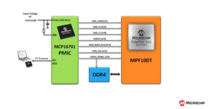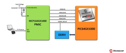 MCP164GX1000:给PIC64GX1000 MPU + DDR4供电的框图