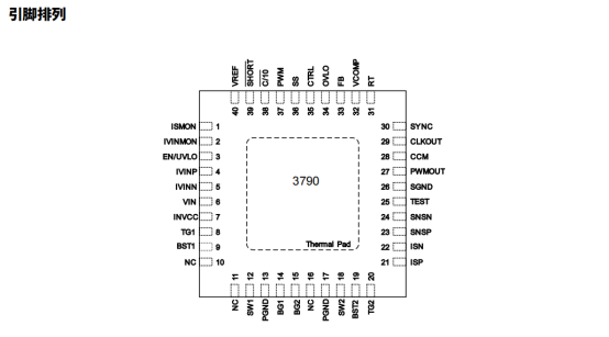 3790 是一款同步四开关升降压控制器,输入电压覆盖 4.7~60V,支持输入电压高于、低于或等于输出电压工作,单颗芯片可实现 100W 功率输出,多颗并联还能拓展更大功率,适用于汽车电子、工业电子、电信基础设施及大功率供电系统等场景。采用 QFN40(5×5mm)封装,底部带裸露散热焊盘,需通过多热过孔连接 PCB 接地层,兼顾小型化布局与高效散热,所有端口具备 ±2000V(HBM)ESD 防护,结温工作范围 - 40℃~+125℃,可靠性适配宽温工业环境。
