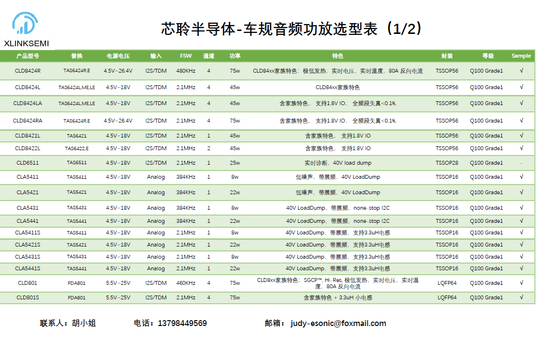 该芯片可直接替代德州仪器(TI)的TAS6424系列(如TAS6424R、TAS6424E等),提供相近或更优的性能,同时以高性价比降低系统成本。