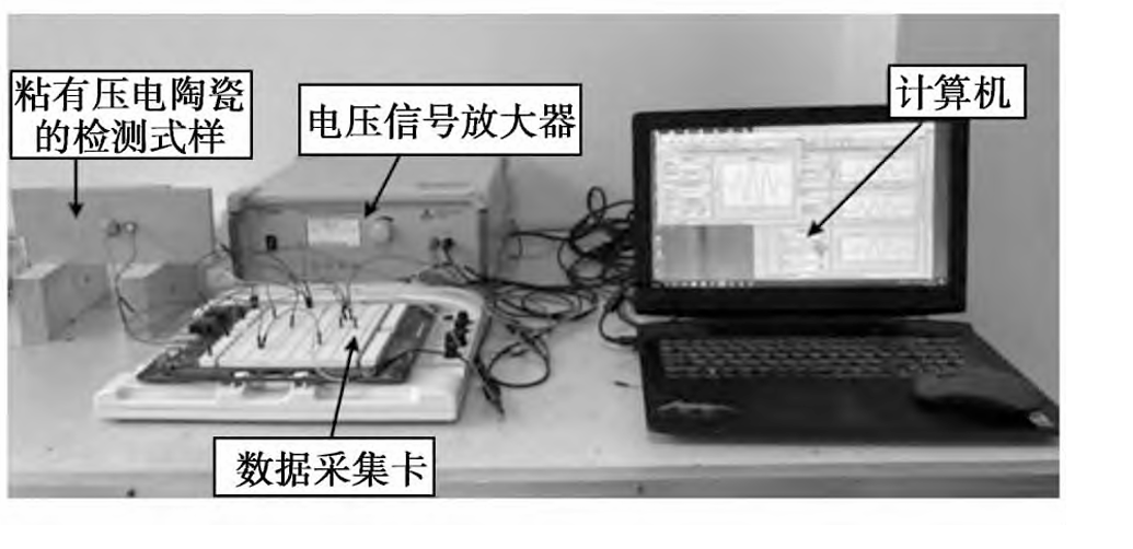 在LabVIEW软件中设置指定的信号波命令,通过数据采集卡产生特定的监测信号。将监测信号通过ATA-2021B高压放大器放大后,激励PZT产生超声波信号,超声波信号在被监测木结构的内部传播后,被另一片PZT接收。接收到的超声波信号被转换为电信号,并通过数据采集卡采集。在LabVIEW软件中显示和分析采集到的电信号,以评估螺栓连接的松紧状态。