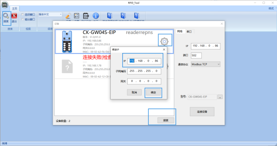 配置映射地址,设备IP,RPI速率(越低通讯速率越快)