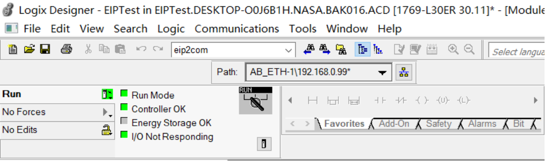 连接已经成功连接,Studio 5000在线,将控制器置成Run模式;