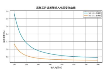 NSI1611和NSI1311的采样误差随输入电压变化曲线