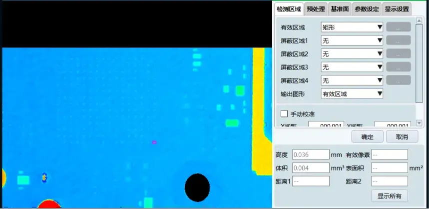 通过本次拍摄测量,并用视觉软件进行计算处理,可通过体积的有无来判断表面是否有元器件缺失的情况。