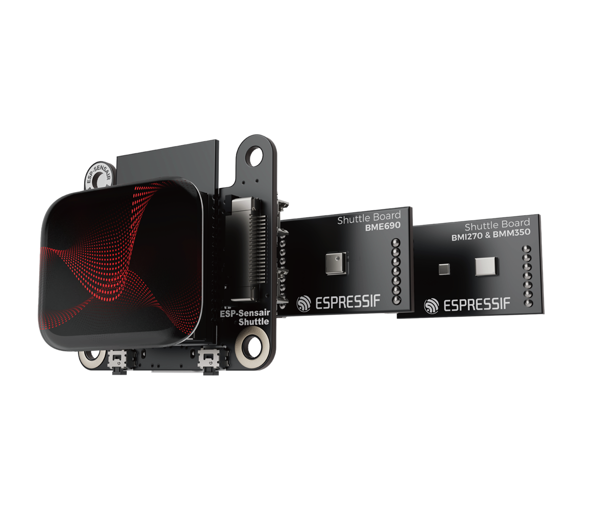 ESP-SensairShuttle 采用模块化架构,以乐鑫 ESP32-C5 MCU 为核心,搭配可互换的 Bosch Shuttle 传感器子板和触控显示屏。