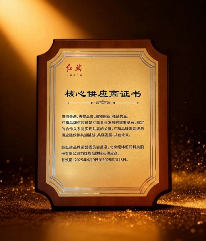 经纬恒润荣获一汽红旗”核心供应商”荣誉证书