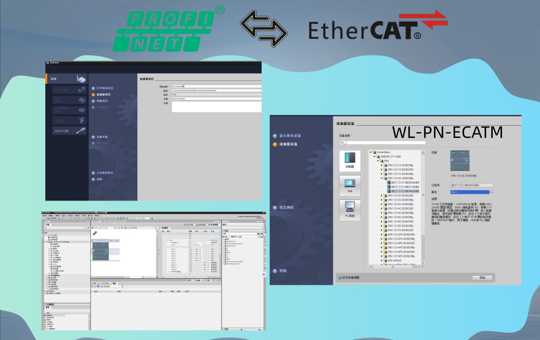 在某工厂的生产系统中,需实现西门子S7-1200PLC与伺服驱动之间的通讯。然而,由于该PLC支持PROFINET通讯协议,而伺服驱动采用EtherCAT通讯协议,二者因协议不兼容无法直接进行数据通讯。为解决此问题,采用(WL-PN-ECATM)智能Profinet转EtherCAT网关模块,具体需完成导入GSD文件、设定IP地址与设备名称、添加从站伺服并配置PDO参数等操作。待连接成功后,可将配置信息下载至网关设备,从而实现全面的数据交互。