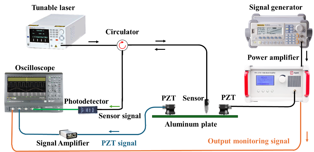 实验设备:ATA-1372A宽带放大器,信号放大器、压电陶瓷探头、可调谐激光器、环形器、示波器等