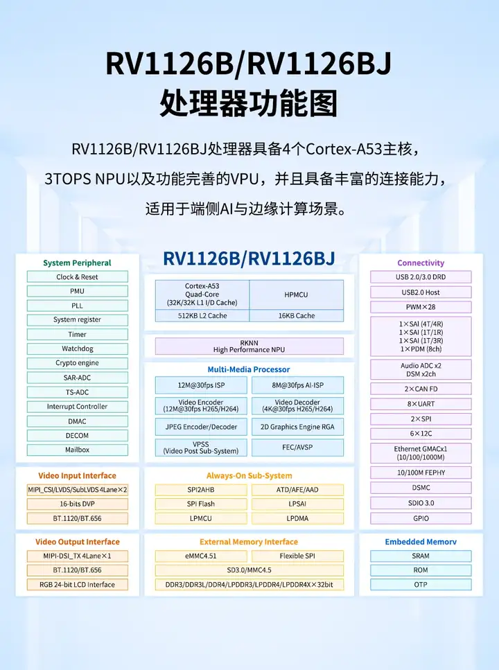 边缘计算时代的到来对终端设备的AI处理能力提出了更高要求,尤其是在智能安防、工业视觉、机器人等AIoT领域,不仅需要高质量的图像处理能力,更需要在端侧实现高效的AI推理——瑞芯微RV1126B中高端AI视觉处理器正是为满足这一需求而生,并且它正在成为诸多行业智能化升级的理想选择。