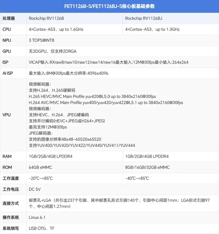 现在,飞凌嵌入式正式推出基于RV1126B系列处理器设计开发的FET1126B-S/FET1126BJ-S核心板!