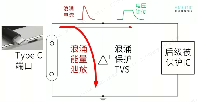 图1 Type C口浪涌事件和TVS浪涌保护泄放动作