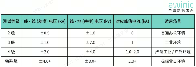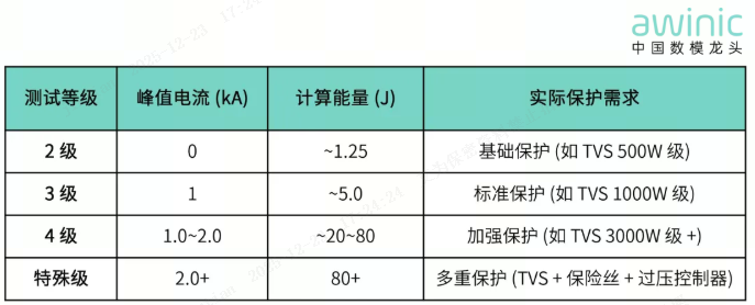 浪涌级别与电压 / 电流参数