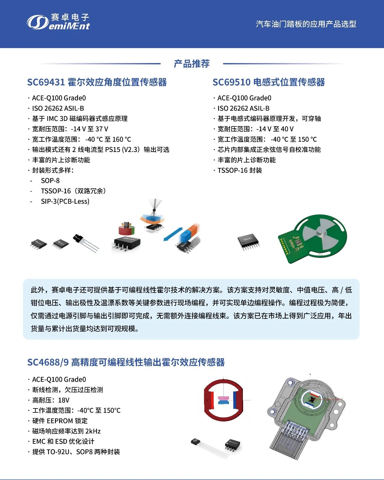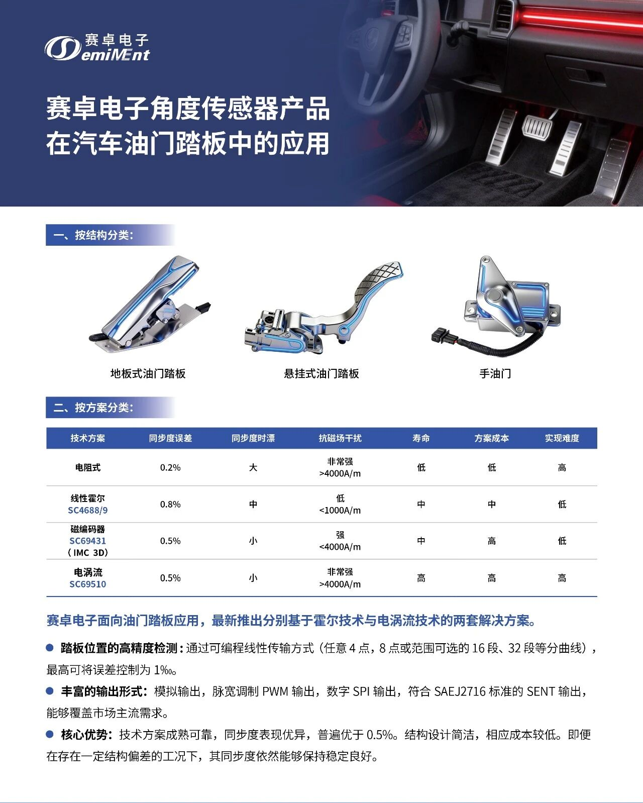 Q1:赛卓电子(Semiment)在汽车油门踏板领域推出了什么方案?