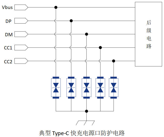 该系列TVS可对电源口进行全方位防护: