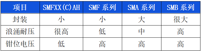 大功率低钳位电压TVS--SMFXX(C)AH系列:
